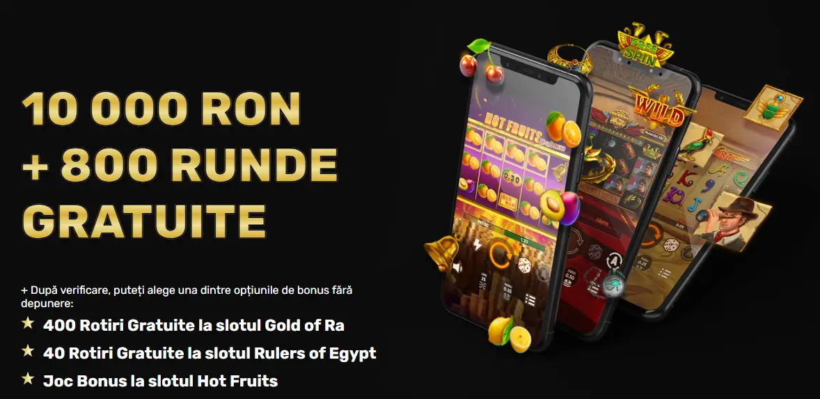 - Alte bonusuri disponibile: la depunere 10000 Lei plus 800 rotiri gratuite